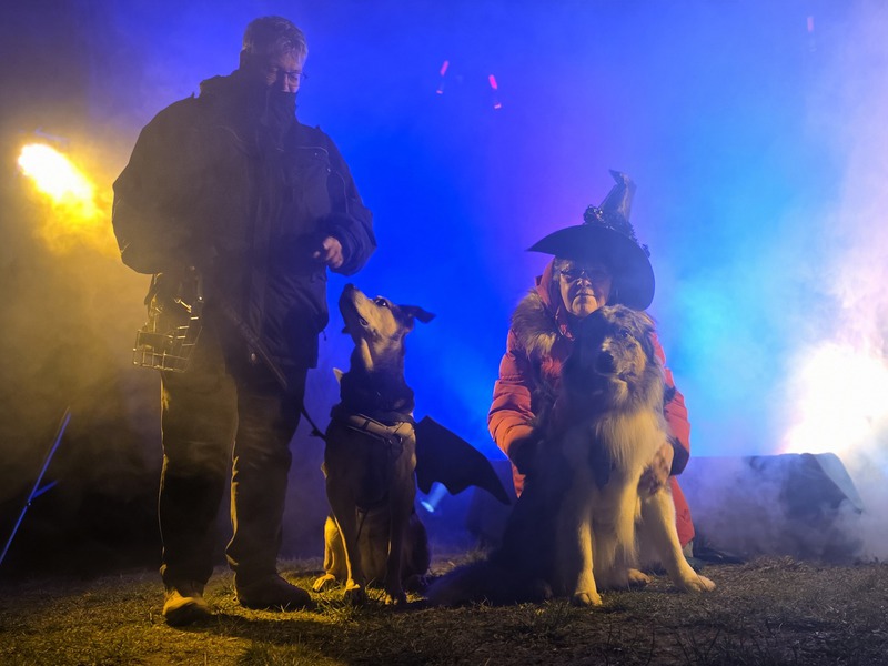Schon immer habe ich mich gerne verkleidet. Es macht einfach Spaß, kreativ zu sein, in einen anderen Charakter zu schlüpfen. Halloween ist dafür natürlich die Gelegenheit. Und da es nun mal Halloween ist, durfte es gerne düster sein. Das ganze Vereinsgelände tauchte ein in eine gespenstische Welt aus tanzenden Hexen, brennenden Kürbissen, wehenden Spinnennetzen und leuchtenden Irrlichtern. Die Mutigen unter uns wagten sich alleine (ich persönlich habe mir ja Verstärkung mitgenommen) auf einen Gruselspaziergang, in den sich unser Trainingsgelände verwandelt hatte. Sie stellten sich den Herausforderungen vorbei an unheimlichen Schatten, merkwürdigen Geräuschen und der ein oder anderen Leiche. Und ich bin mir sicher, dass sich im Wald hinter dem Gelände etwas versteck und auf uns gelauert hat. Nein, ich bin nicht paranoid. Mein Hund war derselben Meinung. Nachdem man den Gruselspaziergang überlebt hatte, konnte man sich auf ein weiteres Highlight freuen (neben dem sehr liebevoll gestalteten Buffet natürlich): Unserer phänomenalen Fotoecke, man kann es einfach nicht anders sagen. In Nebel getaucht und von stimmungsvollen Eulenrufen untermalt sind märchenhafte Fotos entstanden. Für mich persönlich sind es die Schönsten, die ich von mir gemeinsam mit meiner wundervollen Niobe habe und dafür bin ich sehr dankbar. Sie werden Halloween 2025 immer zu etwas Besonderem für mich machen, genauso wie die wundervollen Menschen und Hunde, mit denen ich es verbringen durfte. Dieser Rotkäppchen Secco Sauerkirsch ist für alle, die viel Zeit und Mühe in die Planung und Vorbereitung gesteckt haben, für all die schönen Kostüme und auch für alle, die einfach nur deshalb die Feier zu einer Besonderen gemacht haben, weil sie da waren.